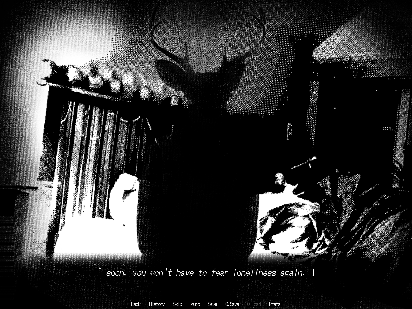 aghhhhh this is so fucking good!! incredible use of dithered B&W assets and a perfect mix of tender and oppressive atmosphere. the way the story folds between obsession and self-abandonment building to that final act of reclamation is really beautiful and relatable. and whom among us hasn't experienced egodeath via trauma-bonded limerence etc. etc.